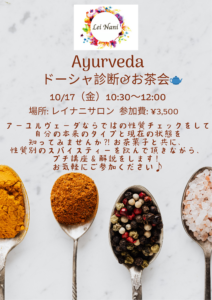 10/17 アーユルヴェーダドーシャ診断&お茶会参加者募集!