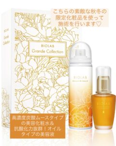 そして‼️使用する化粧品も、夏にたっぷり浴びた紫外線ケアとして、バクチオールやアスタキサンチンなどエイジングケア効果が高く、抗酸化力抜群👍の秋冬限定の美容オイル(魔法のオイル🪄と言われている🧙)で贅沢にマッサージ💕