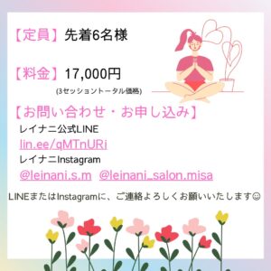 【先着6名様特別価格!】3つのセッション合計 17,000円 あと5名様です!!